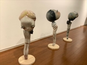 ●6月23日 台湾の客様 今朝自宅に台湾のお客様からたくさんのマンゴーが送られてきた。 先週もマンゴーを台湾のお客様が画廊に送ってくださった。 もう一人大変お世話になっている台湾のお客様もマンゴーを送るとの連絡をいただいた。 台湾はマンゴーの季節なのだろう。 何度も書いたが台湾の客様は実に親切で細やかな気遣いをしてくださる。 画廊も自宅も台湾からいただいた土産物で溢れかえっている。 お茶にカラスミ、パイナップルケーキはたまる一方である。 台湾で喉を痛めるとすぐに皆さんがのどの薬を持ってきてくださる。 マスクも次々と送ってくださった。 台湾の画廊やお客様はコロナで今しばらくは日本に来れないのだが、メールで毎日展覧会以外でも何かしら作品の購入をしてくださっている。 ありがたいことで、作品はみな秋の台北アートフェアの時にお渡しすることになっているのだが、お金は全て先に送ってくださるし、ここ何年かは値切ることもしなくなった。 支払いが遅くなったり、値切る方は画廊でも優先順位が低くなり、いい作品が入ってもまずは綺麗に買ってくださる方を優先することになる。 日本のお客様も値切る人はまずいないが、以前は韓国や中国、台湾の人は値切るのが当たり前で、その上支払いも遅い方が多く戸惑ったことがあったが、今はそういうこともなくなり、 もし値切る方がいれば、丁重にお断りをすることにしている。 そんなこともあって、今画廊は台湾の客様への依存度が高くなり、台湾に足を向けては寝れなくなっている。 コロナ禍も台湾はうまく押さえ込んでいて、経済もうまく回っているのだろう。 秋のアート台北でみなさんにお会いすることになるが、今度はご馳走攻めの毎日が続く。 初めて韓国に行った時も大歓迎で、毎晩のご馳走攻めで、借金してでも韓国の人はお客様を歓待すると聞いて驚いたことがあったが、台湾の方はそれ以上である。 四方八方頭を下げても下げ足りないくらいなのだが、こうした時期にあって台湾様様の毎日である。 ●6月20日A 牧野永美子展 GT2では牧野永美子個展が同時に始まる。 こちらも立体で鍛金をメーンにFRP、木材などを使い、擬人化されたエイや鶴、山羊などが並ぶ。 ●6月20日@ 三木サチコ展 FRPに彩色した立体作品が並ぶ。 「TWINS?」のタイトル通りにそれぞれに対になる作品なのだが展示では離れ離れに置かれている。 素材のFRPとは繊維強化プラスチックというもので、丈夫で軽く防水効果もありバスタブや船の船体などに使われることが多い。 三木の手で彩色することでFRPの表面は磁器のようなつるつるの肌合いになったり、石膏像のようなザラッとした風合いに変化する。 小人のような可愛らしい人物から圧倒されるような大きさの人体像までが広い空間に展開される。 可愛いようで、少し不気味ないわゆるキモ可愛い子供達なのだが、どこか引きつけられる愛嬌のある表情がいい。 立ち姿もどこか危なしげに立っているのだが、その仕草がなんともいじらしく見える。 絵も言われぬ摩訶不思議な子供達に会いにきませんか。 ●6月19日 印象記 佐藤温展 紋谷幹男氏展覧会印象記 佐藤温展 生命組織が生命プロセスを経て、 特殊な機能を持つ形態と性能を与えられ、 職務を果たす。 想像力豊かな人なら、 このような発想で 妄想を楽しむことができるかもしれませんが、 美術家は、自身の妄想に 視覚情報を持たせることができます。 この作家は、 レトロモダンなテイストが好みのようで、 込められたテクノロジーは新鋭で高性能ながら、 醸し出される雰囲気は、緩く、牧歌的で、 そのギャップと、 ぐいぐいと架空の世界を構築する推進力で、 謎めいた中に、 妙に説得力のあるイメージを作り出しています。 生身の人は登場しませんが、 画面は叙情的で、様々な「含み」があり、 観る側にそれぞれのストーリーを連想させる。 そんな印象でした。 ●6月18日 印象記 内藤亜澄展 紋谷幹男氏の展覧会印象記が送られてきた。 的確に作品を捉え、素敵な表現で作品を語ってくださる。 こんなふうに言葉を操れたらどんなにいいだろうといつも思っている。 内藤亜澄、佐藤温の展覧会の印象である。 内藤亜澄展 モチーフは人物。 特定の誰かを描くポートレートというより、 無名の人が何かをしている場面です。 画家は、具象的に描き進めるうちに、 自身が画面の上で見たいことは、 実は、 自身が見えている姿形ではないということに気付いた時に、 ごの特異な画業が始まったと思われます。 観る側は、「わかるはずの」場所に、 戸惑いと驚きとともに、 取り残されます。 特定の空間と時間に、 特定の人がある想念を抱えて居合わせれば、 全てが無関係であるが故に 事故のような衝撃で関係性が生まれ、 何も前提としない現象が生じる。 絵肌で強く視覚を捉え、 現実の狭間へ誘い込む。 ●6月17日 オンライン FBにオンラインで美術品を買えるなら画廊に行かなくてもいいかなとのコメントがあっ