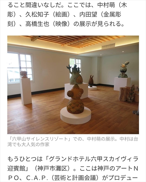 ●9月28日 コロナ禍でのアート市場 オークション会社サザビーズのニュースレターが届いた。 サザビーズジャパンの代表石坂泰章氏の文章を一部引用させていただく。 コロナが騒がれ始めた3月頃アート業界はパニックに包まれた。 ライブオークションやアートフェアは中止、画廊も休業、その上大恐慌以来の不況到来で売り物が殺到するのではという不安が広がった。 それから半年を経てコロナはまだ収束していないものの、おぼろげながら美術市場の将来像が浮かび上がってきた。 それは危惧していた衰退というよりも、意外やIT活用の加速化による市場の進化と拡大という明るい未来であった。 まずはネットオークションを介しての取引が伸びた。 サザビーズでは3〜7月末に各分野の計180回以上のネットオークションで、既に昨年度通年の数字の3倍を超える310億円が落札された。 昨年サザビーズ本体のオーナーが交替し、IT業界出身でネットに注力していたこととも相まって、 同時期の競合他社の数字のほぼ倍となった。 毎回の参加者は40ケ国に及び、その三分の一は新規顧客で、特に若手の新規顧客が多かった。この勢いを駆ってネットと融合したライブオークションが再開し、 落札総額400億円、落札率93%など、従来のイブニングセールに遜色のない結果を出すことができたと述べている。 この結果を見ると、他の分野でもそうだが、新たな経済の仕組みがITというシステムを使って構築されていくことがわかる。 私どももネットによる売り上げが画廊での売り上げを超える状態が続いていて、画廊に来られるお客様が少なくなる中、画像配信、動画配信などによる発信が功を奏している。 来月も台北のフェアの参加を断念し、オンラインアートフェアを独自にやろうと思っているが、果たしてどういう結果となるのだろうか。 不安半分、期待半分である。 ●9月21日 参加断念 10月に開催されるアートフェア・アート台北への参加はコロナ禍のため断念することになった。 ソウルのアートフェアKIAFの参加取りやめに続いての不参加である。 KIAFは結局政府の指示によりフェア自体が中止になった。 参加予定の作家さんは既に出品作品に取り組んでいて、このままでは発表の機会が失われることになる。 そこで10月17日よりギャラリー椿にてKIAF、アート台北に出品を予定していた作品を展示し、オンラインアートフェアを開催することにした。 アルバイトで来てもらっているスタッフが動画による作品紹介の仕事を友人と始めたこともあり、 オンラインでより立体的に作品紹介が可能になり、フェアの臨場感も体感してもらうことができる。 このオンラインフェアには参加を取りやめた画廊も何軒か参加することになっているが、他にも参加を希望する画廊があればギャラリー椿宛に問い合わせていただきたい。 韓国、台湾のお客様には直接作品を見ていただくことはできないが、オンライにて楽しんでいただければ幸いである。 作品画像: アート台北出品作品・北村奈津子・山本麻友香 ●9月19日 「六甲ミーツ・アート芸術散歩」 「六甲ミーツ・アート芸術散歩」11月23日まで六甲山上の12会場で開催されている。 各会場にあるアート作品を、ピクニック気分で周遊しながら楽しめる現代アートの展覧会である。 旧六甲山ホテルがイタリアの建築界の巨匠ミケーレ・デ・ルッキの手によって修復され、「六甲山サイレンスリゾート」として生まれ変わり、その室内には中村萌の作品は展示されている。 秋には紅葉に囲まれ、夜は神戸の絶景の夜景が見ることができる絶好のロケーションの中でのアート鑑賞、時間を見てぜひ行く予定にしている。 ●9月17日 オンラインショッピング 画廊では個展やアートフェア用に画集やポストカード、トートバッグ、その他のアートグッズを色々と作っている。 その期間は人気作家のものはかなりの数が売れるが、終わって画廊に置いておいてもほとんど売れることはない。 コレクターの方は美術作品は買ってもこうしたアートグッズは買わないものと思っていた。 ところがここに来て毎日のように相当な数の注文が入るようになった。 スタッフがオンライショッピングに登録したおかげである。 私ではまず思いつかないが、スタッフ達はネット通販は当たり前のように使っていて、 今までお店に行って買っていたような画廊の事務用品から梱包材料、その他の雑貨もネットで購入している。 今のご時世当たり前といったらなんだが、私世代は見てから買わないとと不安が先に走る。 退院して保険会社に電話をして入院費用や手術費用の請求をしようとすると、スマホで申し込めば翌日には払い込むという音声が流れる。 これは便利だがやり方がわからず、結局書類で送ってもらうことにした。 一事が万事こんな具合なので、1日中右往左往している。 それでもまだFBやLINEを使っているだけマシなのだろう。 どちらにしても画廊にただ置いてあるだけのグッズ類が毎日のように売れて