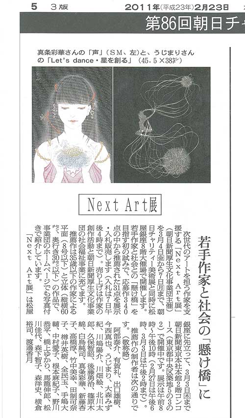 このような記事がでることは好ましいが、いずれも芸能や現代アート系などの代表者であり、この点でも画壇系など旧来の美術界からの発信力がないことがあきらかのようだ。 |