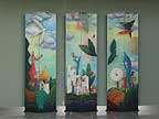 彼にとっても初めての大作でもあり、どのような作品ができるかとても楽しみであったが、現代版屏風を想定し、三つの2メートルの高さの三角錐の作品プランが出来上がった。