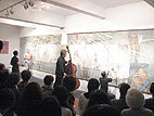 オープニングでは、昨年同様に現代音楽のコントラバス奏者斎藤徹氏の即興演奏と小林裕児のペインティングによるコラヴォレーションに加え、現代美術で活躍する石井博康氏との共同制作(アートバトル)のパフォーマンスがあり、更に飛び入りで海外ではその名を知られるジャン・サスポータス氏(フランス)のダンスありと、盛りだくさんの初日となった。