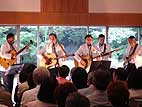 平均年齢が60歳を過ぎているが、みんなヴァンで有名な石津謙介の息子さん提供のボタンダウンのシャツやジャケットをまとい、昔アイビーで鳴らしたおじさんおばさんたちも手拍子足拍子で大興奮、大いに盛り上がった。