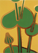 「野の花」というタイトルにしましたのは、去年小さい畑を初めて作りましたら、いろいろな発見をしたことからなんです。薔薇も綺麗だけれども、小さな雑草をよく観察しますと、造形的には薔薇となんら変わりのない。あるいは、小さい分だけ綺麗な花よりも美しいものがあるわけです。そういうものから形を借りたり、デフォルメしたり、植物の自由さに面白みを感じて描いてみようと思いました。