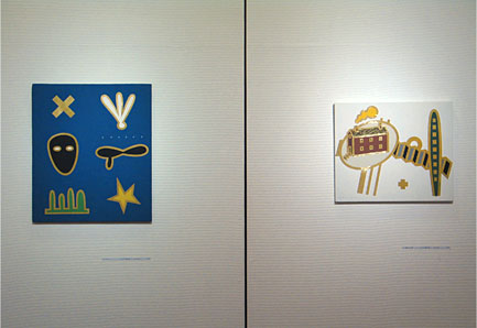・・・祭壇画と言われたので思いましたが、金の輪郭線を用いられるのは、ある意味、プラトンのイデア的な、時空を超越した絶対的な永遠の美の形を探ってらっしゃる様にも思います。輪郭線でくくるというのは、記号的な要素がかなりあるように思うんです。でも記号の指し示しているものは、一義的なものではなく、ご自身の中で多義的な要素を組み合わせてイメージを表出されている。ですから見る側は、ラビリンスに引き込まれるような不思議な心地いい感覚を味わうのではないでしょうか。