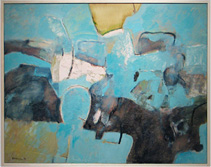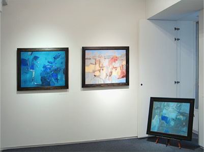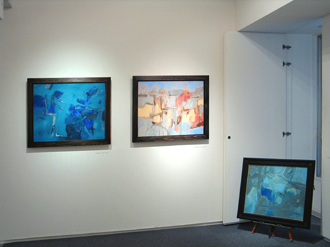 僕は、タイトルはできてから考えるタイプなんです。ですからタイトルには、余り重きを置いていませんので、今回展示した作品はすべて「鳥の行方」として、NO.1-12まで番号を振ってあります。そもそも「鳥の行方」を描くきっかけは、偶々旧約聖書の創世記をインターネットで調べていましたら、ノアの箱船を紹介するページがあったからなんです。これは現代の人間にも通じる話なので面白いなと思い、それを頭にイメージしながら描き始めました。ノアの箱船の話は、堕落した人間を懲らしめるためということから始まるのですが、大洪水の後150日間漂流してアララト山に漂着するんです。40日間そこに留まっているのですが、見渡す限りの海原で地面が見えません。そこで鳥を放って陸地を探させるのですけど、2日後に鳥はへとへとになって戻ってきてしまうんです。つまり止まる所がなかったわけです。でも、3日目にもう一度鳥を放しますと、今度はオリーブの葉をくわえて戻ってきたんです。4日目に陸地があったということで上陸しまして、神に感謝しショアーを捧げたと書いてありました。