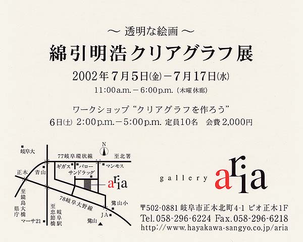 〜透明な絵画〜 綿引明浩クリアグラフ展 2002年7月5日(金)−17日(水) 11:00a.m. - 6:00p.m.(木曜休廊)