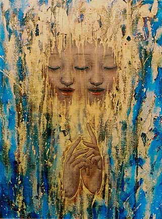 | 恒松正敏が1998年手塚眞監督 『白痴』 、そして昨年の北村龍平監督 『スカイハイ』に続き、三度び映画の美術に参加した。 映画は二階 健監督 『ラスト・クォーター』 (原作/矢沢あい著・少女コミック 「下弦の月」 )。 出演は栗山千明、成宮寛貴など。 ある少女の生まれ変わりと再生をめぐる物語の中、その謎めいたストーリーの鍵をにぎる初老の画家役を緒形 拳が演じる。アトリエをうめる絵画群、そして物語を象徴するかのような絵画2点(描きおろし)が恒松正敏の作品だ。 映画『ラスト・クォーター』は今秋9月頃、松竹系より全国ロードショー公開の予定。 |