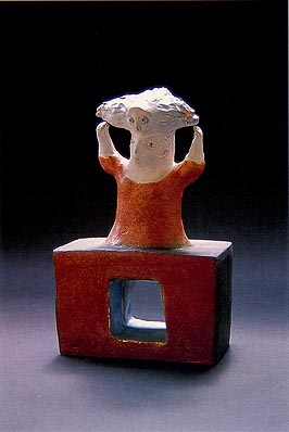 「明日への羽ばたき」18x12x27cm 陶立体・金彩