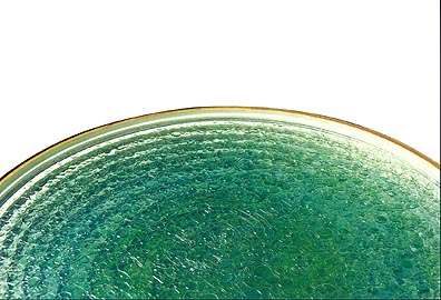 たとえば、それは、子供の頃、無闇に集めほうけていたビー玉のなかの、とりわけ綺麗なヤツを宝石のように仲間たちに自慢し、ときどき空に透かしては、閉じ込められた色のかけらと気泡を陶然とみつめていた、あの記憶にとても近いものなのだ。ポリエステル樹脂で雨滴のような不定形な凸凹をこさえた板ガラスで囲った箱の中は、採集した色とかたちが微妙に屈折し、ゆらめき、きらめいている。いわば、箱の形をしたビー玉。ちょっとチープなニュアンスだが、≪ビー箱≫と呼んでしまおう。