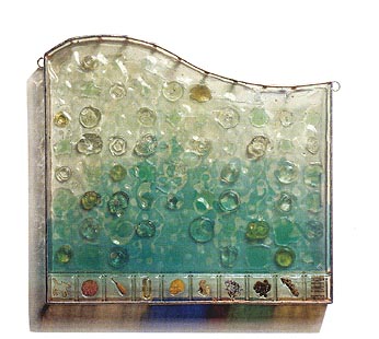 これってアート、それともインテリア? おそらく、そうした問いは、このモノたちにとっては、ほとんど無意味である。もともとアートとインテリアの境界線もかなり曖昧なものではあるし、据え付けられた場所や環境によって、それは意味合いを変えるものだから。要するに、これらのオーナーになる人しだい、なのである。作者自身もどうやら、そういうことには頓着していなさそうだ。ただ、そこに在るだけで何気ない幸福感にひたることのできるガラスの箱たち。そして、見ることのいつまでも変わることのない至福を与えてくれる装置。とすれば、単なる飾り物ではなくなる。