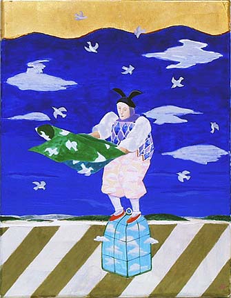 カレンダー原画 4月 「鳥・鳥」 F0 テンペラ/板