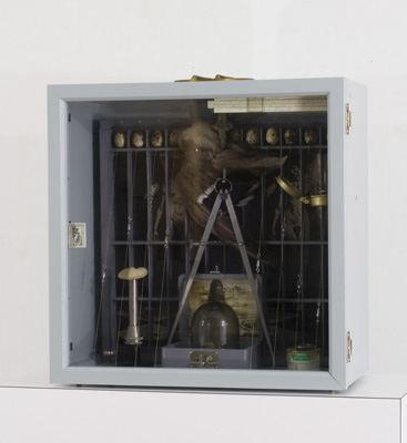 ŒšÎ@CŽu u”Ž•¨Ži’ˆ‚ÉŽ~‚Ü‚é˜J“ŽÒ‚܂ł̑ª’èjv Mixed media H53xW53x28cm